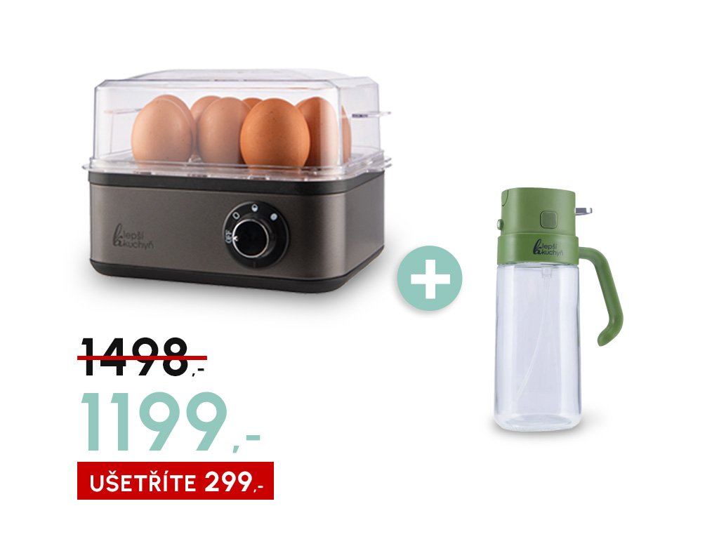 Vařič ti zajistí rychlou a spolehlivou přípravu vajec přesně podle chuti (vejce na měkko, na hniličko, na tvrdo, omeletky, volská oka), zatímco Sprej na olej se stane univerzálním pomocníkem pro jakékoliv vaření a pečení. Společně tvoří smysluplnou kombinaci, která dává logiku jak prakticky, tak cenově.